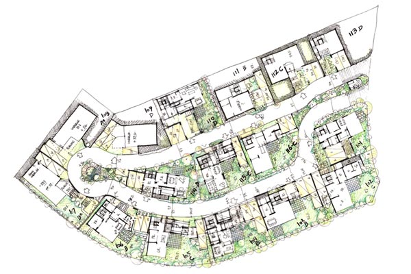 16 viviendas, diseño de arquitectura, paisajismo e interior de dos tipos. |
